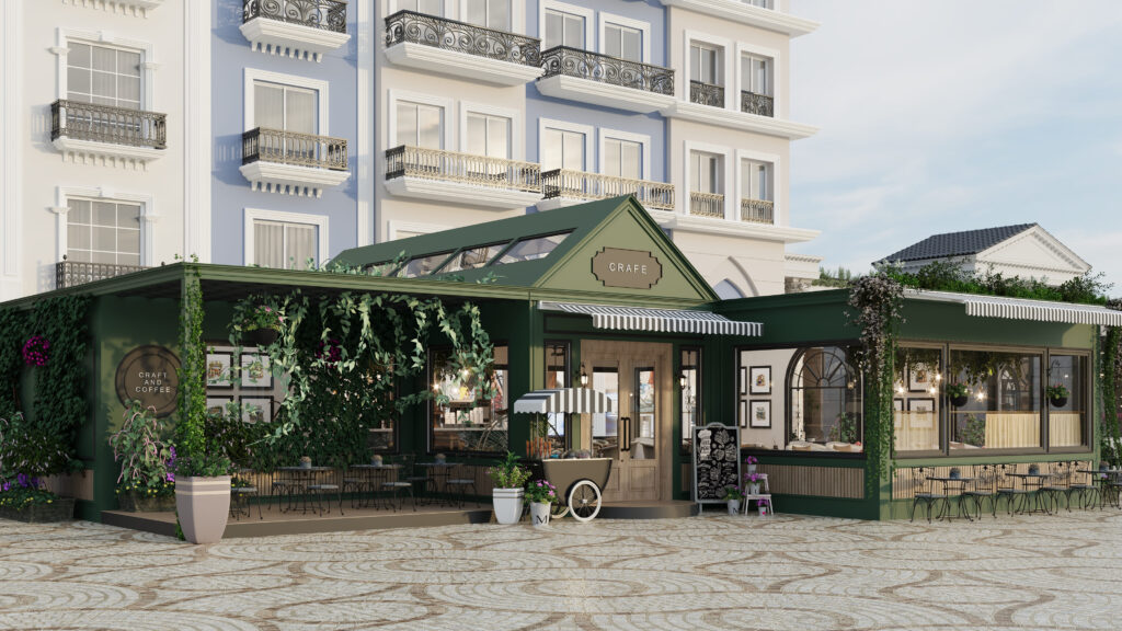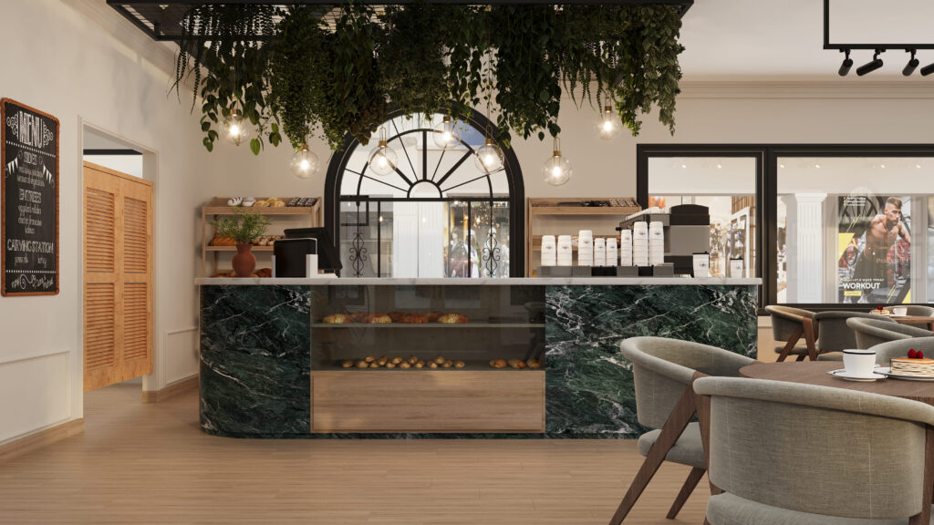 The client envisioned a café with an airy yet vintage atmosphere, a space that balanced openness with intimacy. Their aspiration was to create a destination that invited natural light, showcased greenery, and embodied artisanal craft through carefully chosen details. The café was to feel timeless yet functional, drawing inspiration from both European street cafés and modern design sensibilities.