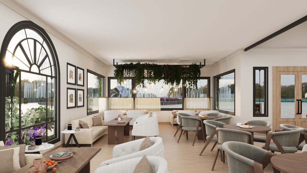 The final design is a harmonious fusion of light, greenery, and nostalgia. By carefully orchestrating daylight through skylight positioning, filtered plantings, and charming half curtains, the café achieves the client’s vision of an airy yet vintage haven. It feels open, welcoming, and timeless—an artisanal retreat where design solves functional challenges while elevating everyday experience.